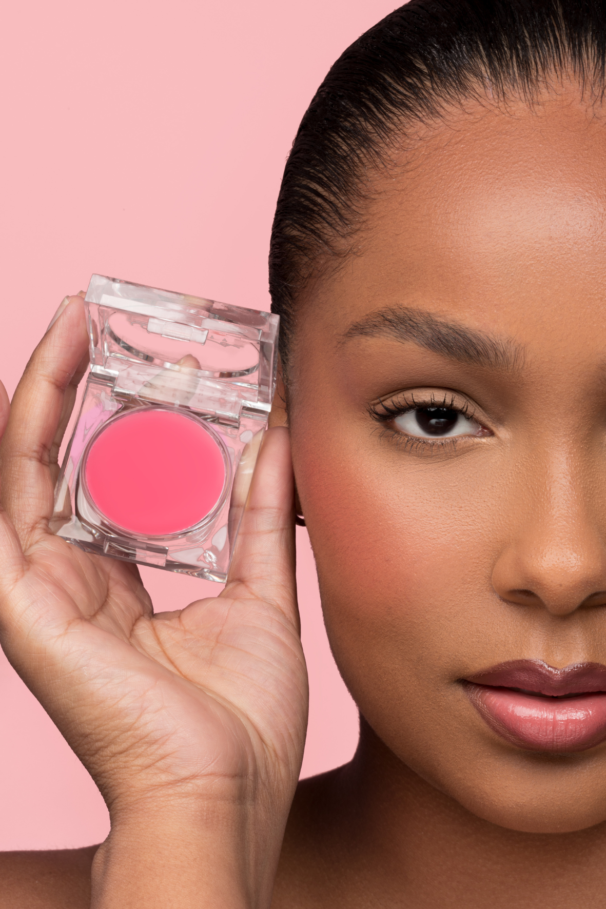 ETHYLHEXYL PALMITATE, CAPRYLIC/CAPRIC TRIGLYCERIDE, TRIDECYL TRIMELLITATE, KAOLIN, OCTYLDODECANOL, POLYISOBUTENE, POLYETHYLENE, POLYMETHYL METHACRYLATE, MICA, MICROCRYSTALLINE WAX, DISTEARDIMONIUM HECTORITE,BIS-DIGLYCERYL POLYACYLADIPATE-2, PHENOXYETHANOL, TOCOPHERYL ACETATE, PROPYLENE CARBONATE, TITANIUM DIOXIDE (CI 77891), D & C RED 6 BA LAKE (CI 15850), D & C RED 21 AL LAKE (CI 45380), IRON OXIDE RED (CI 77491).